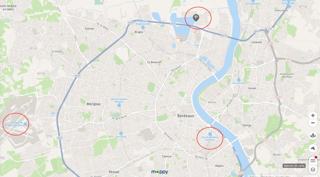 Situation géographique Aéroport – gare TGV et palais des congrès